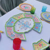 7-piece aperitif set in melamine from the Mamma Mia collection conceived with the aim of infusing vitality not only on the table, but also in every corner of the house through a kaleidoscope of colours, intriguing symbols, mysterious writings and compelling drawings50 x 60 cm