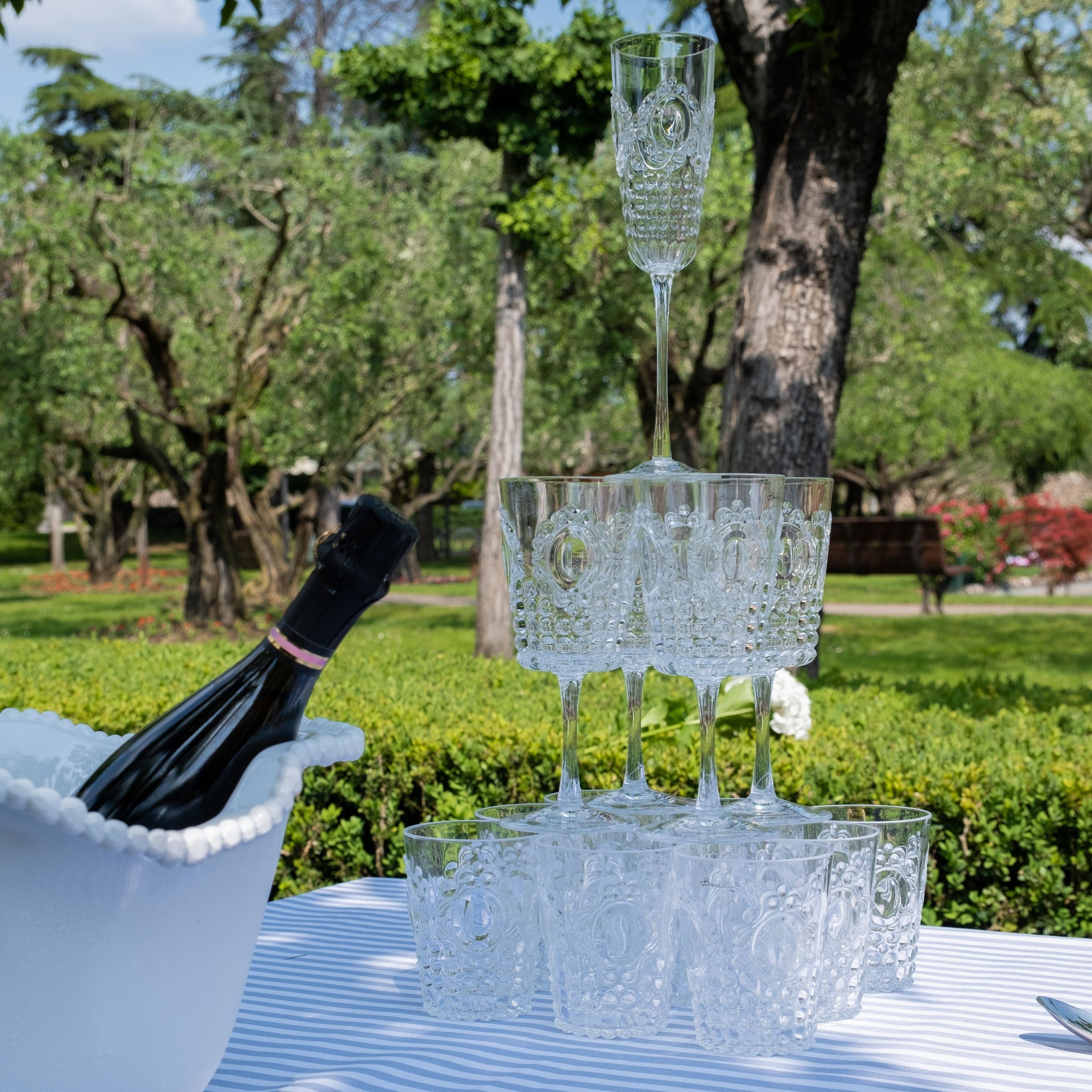 Set of 6 champagne flutes in acrylic from the Baroque & Rock collection, combining classic elegance with modern durability. Perfect for toasting special occasions, these flutes feature a refined design that adds sophistication to your celebrations. Lightweight and shatter-resistant, they’re ideal for both indoor and outdoor entertaining.