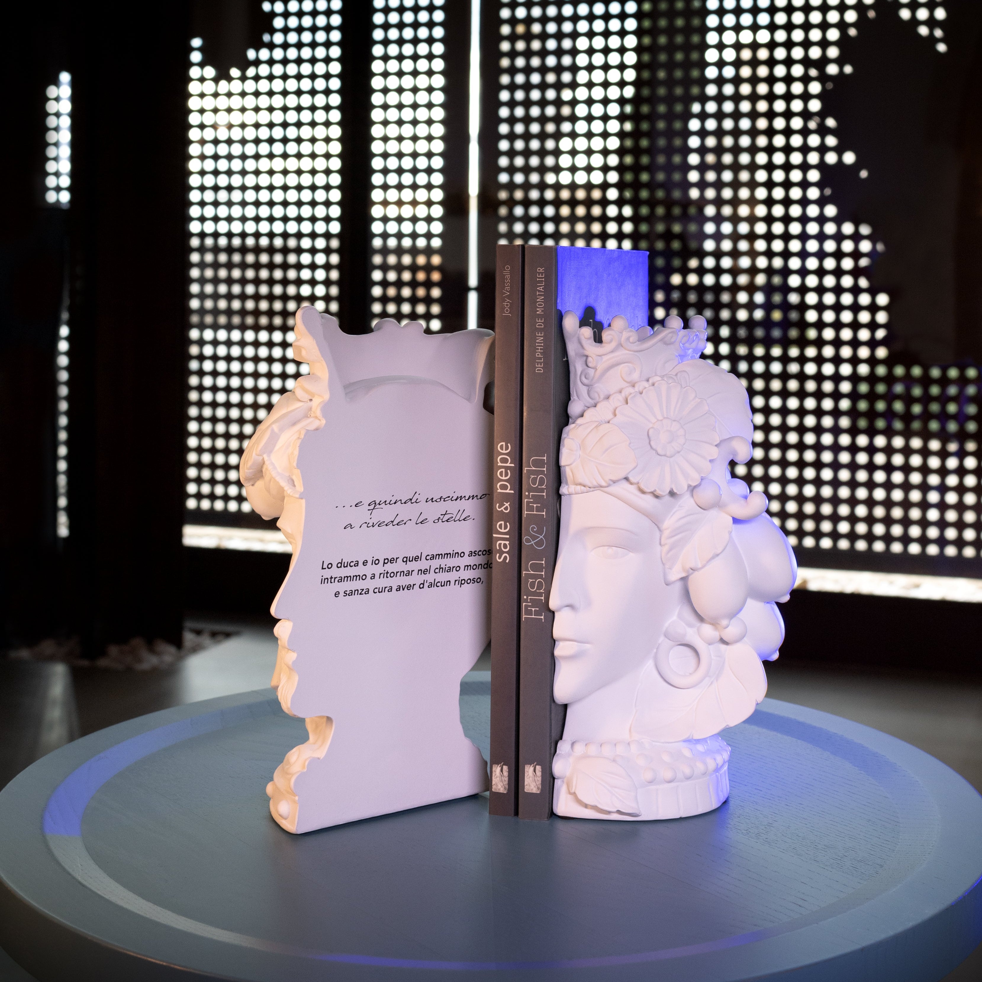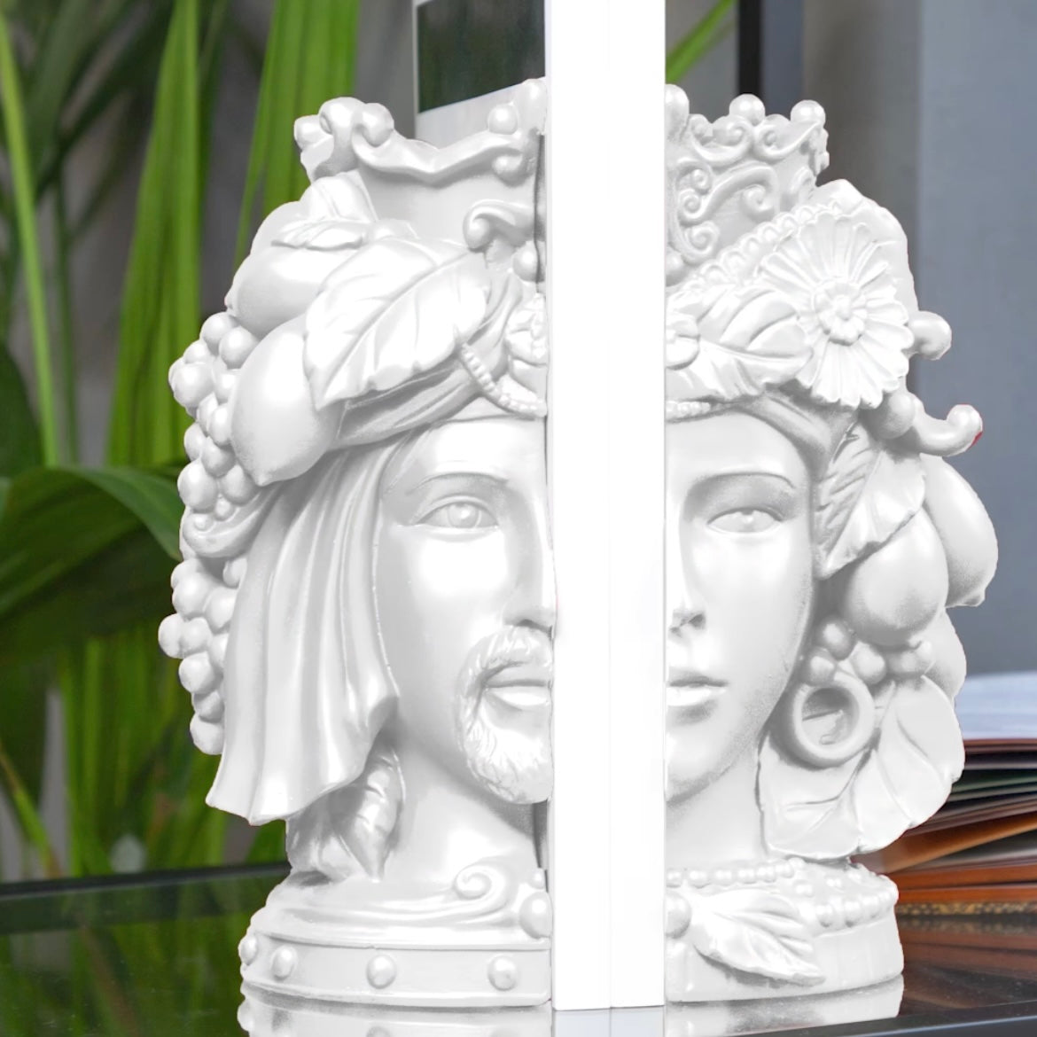 White bookends from the Teste Matte collection, offering timeless elegance and Sicilian-inspired artistry. Perfect for adding a refined touch to your bookshelf.