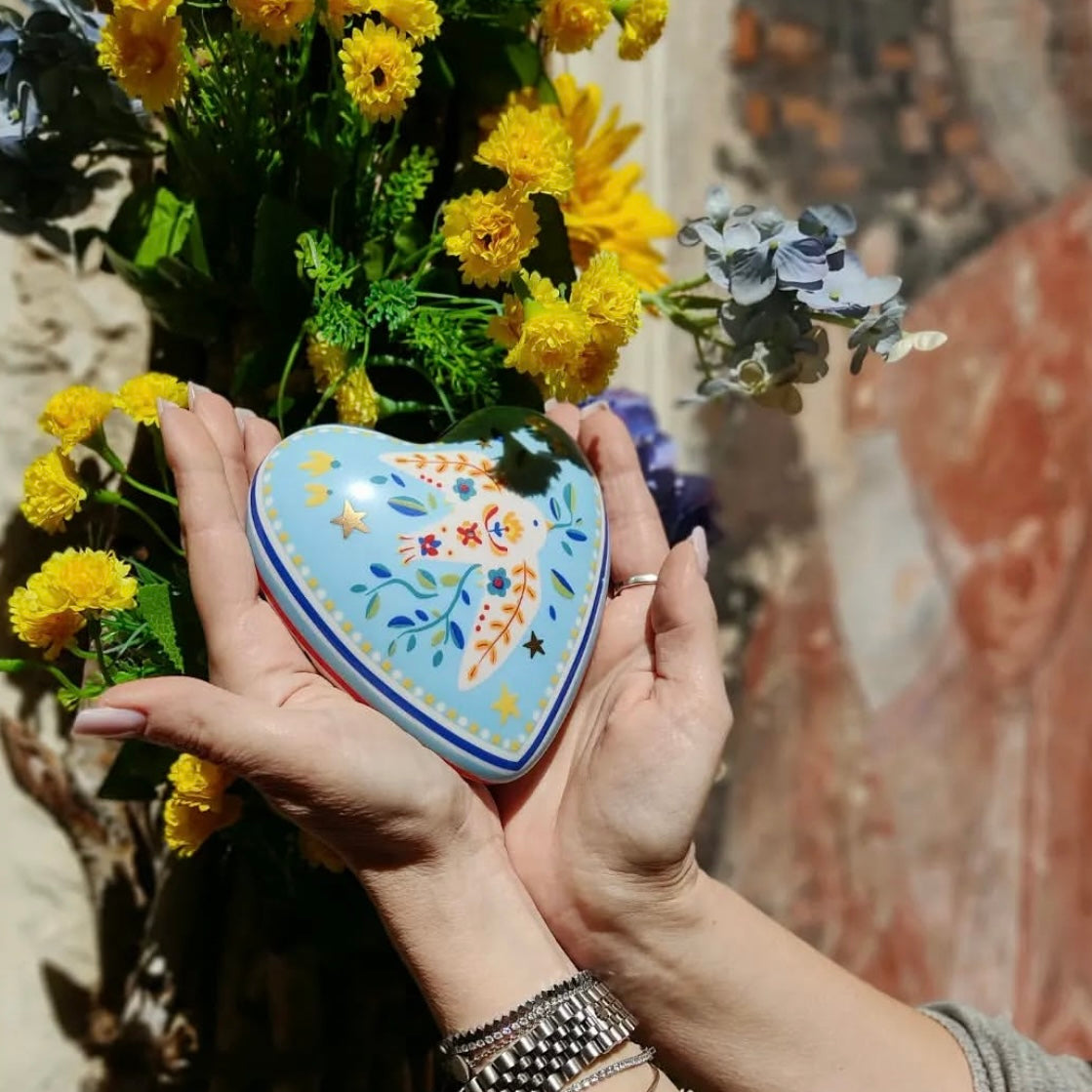 Large decorative porcelain heart from the Mamma Mia collection, showcasing a delicate little bird motif. This decorative piece adds elegance and personality to any room or makes a heartfelt gift.