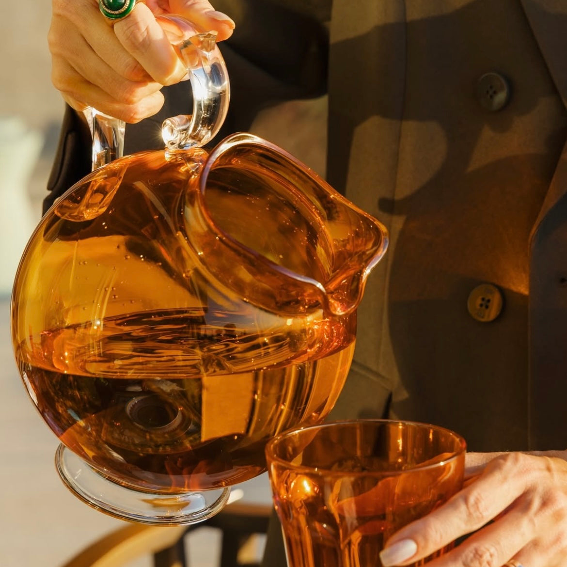 The acrylic pitcher from the delicate Aqua collection. The perfect classic lines find space and expression in objects capable of combining the seduction of a refined design with the harmony of a functional material such as acrylic.
