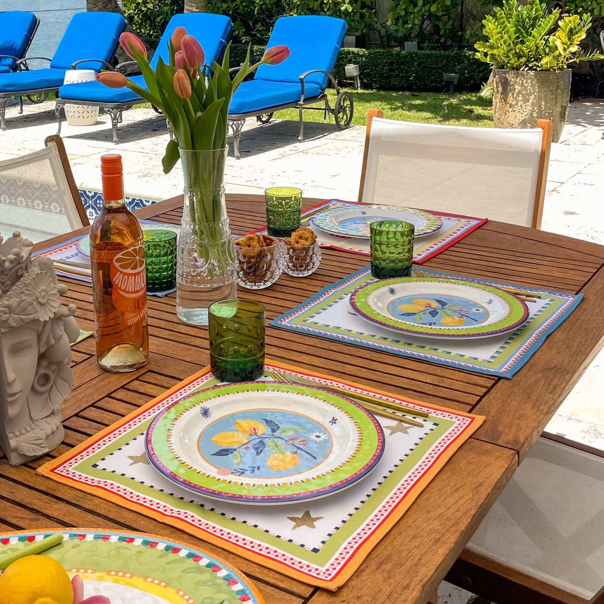 Summer entertaining, coastal homes, outdoor dining, poolside parties, families who love color, St. Patrick's Day, spring gatherings, or anyone who wants to add fresh, vibrant energy to their table.