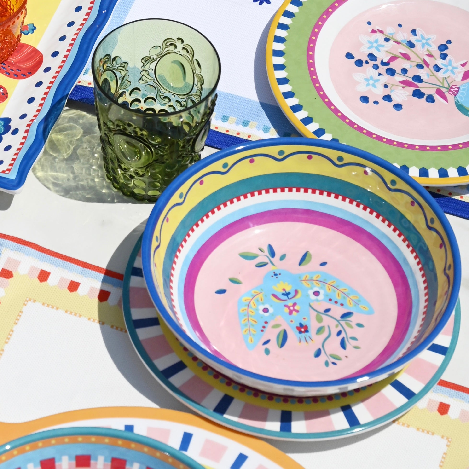 Set of 6 soup bowls in melamine from the Mamma Mia collection, decorated with a charming bird motif. Perfect for adding a whimsical touch to your table. Ø 23 cm.