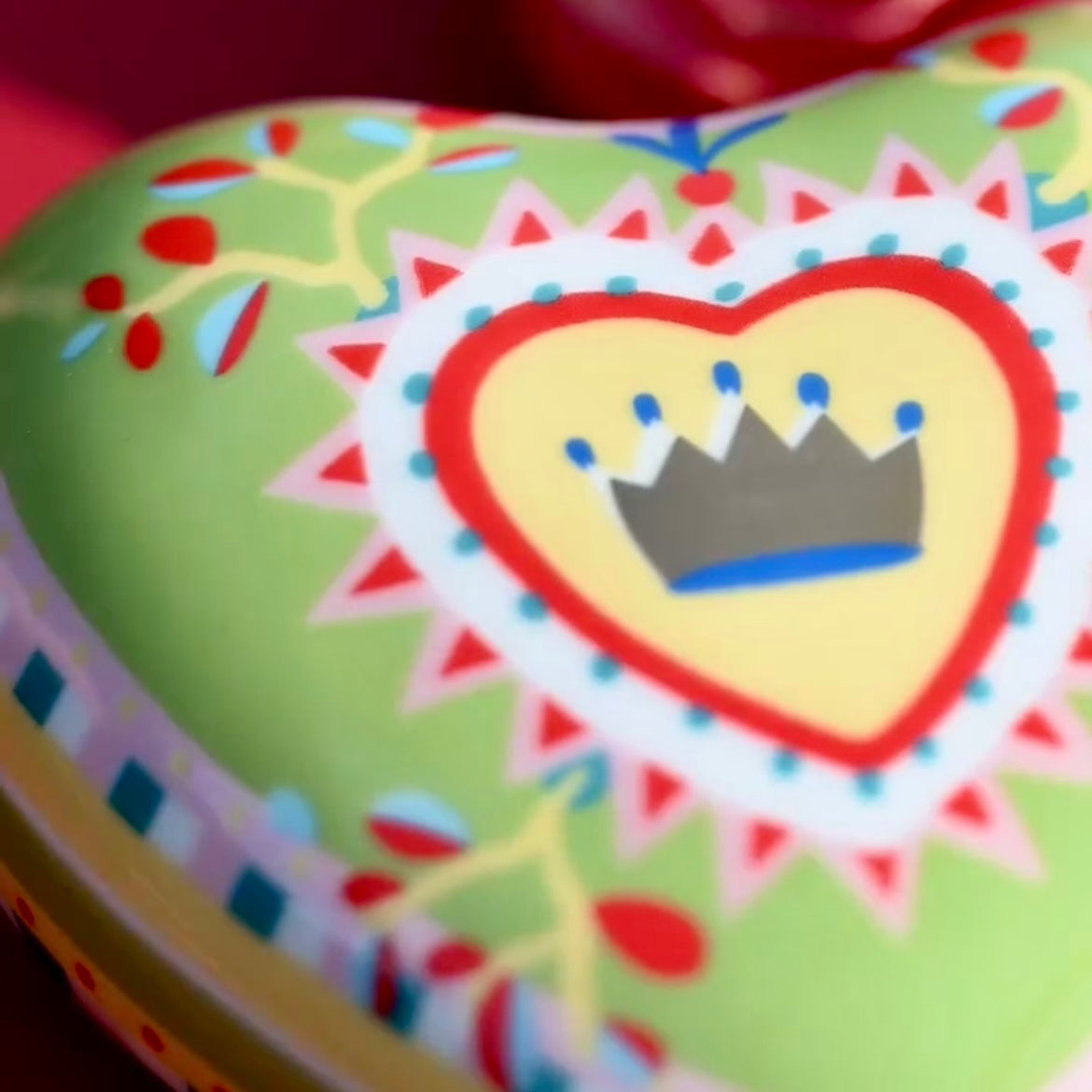 Small decorative heart in porcelain from the Mamma Mia collection, featuring a regal crown design. Ideal as a unique decorative item or a charming gift for special occasions. H 4 cm; W 9.5 cm; L 9.5 cm.