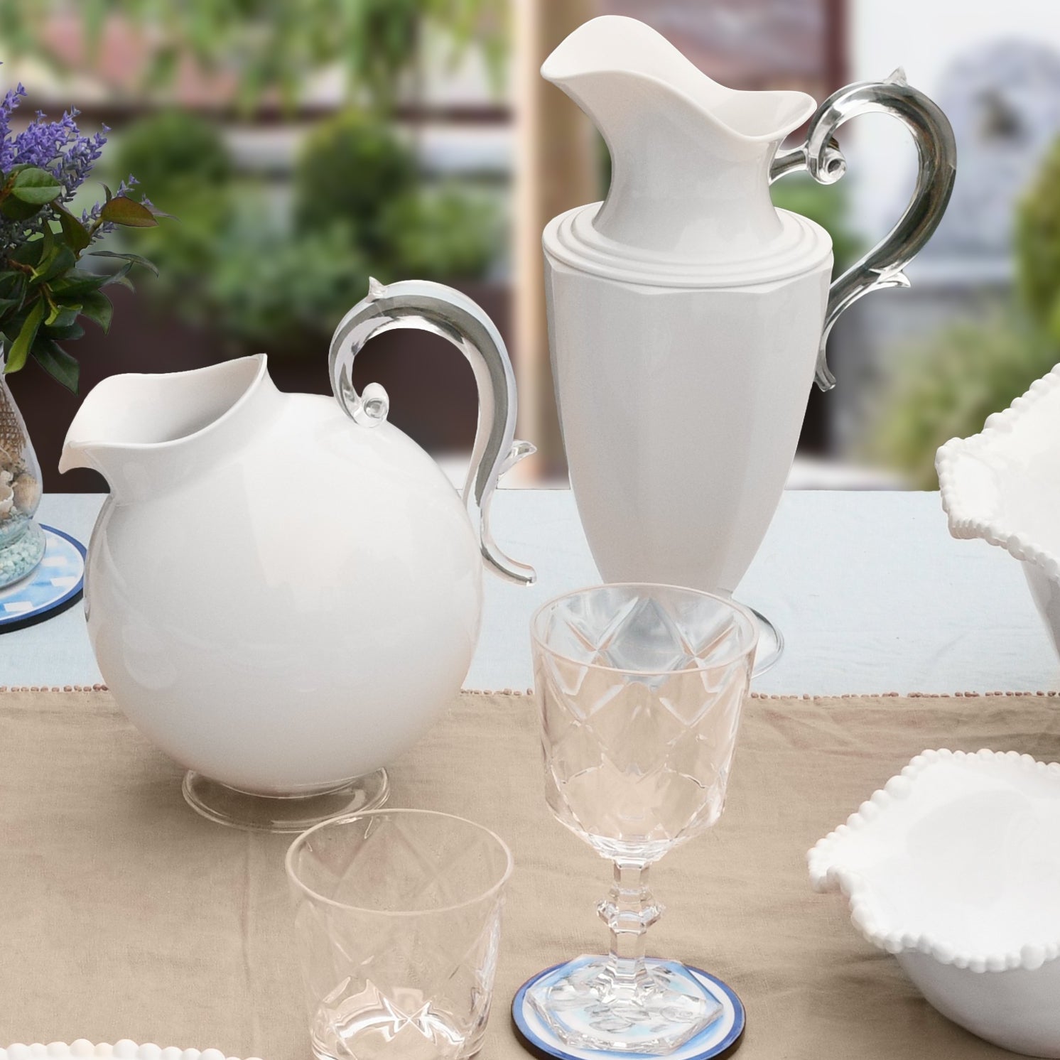 White acrylic pitcher from the Aqua collection, designed to combine functionality with minimalist elegance. Perfect for serving water, juice, or other beverages, this jug features a sleek and durable design that complements any table setting. Ideal for everyday use or entertaining, it brings practicality and modern style to your home.